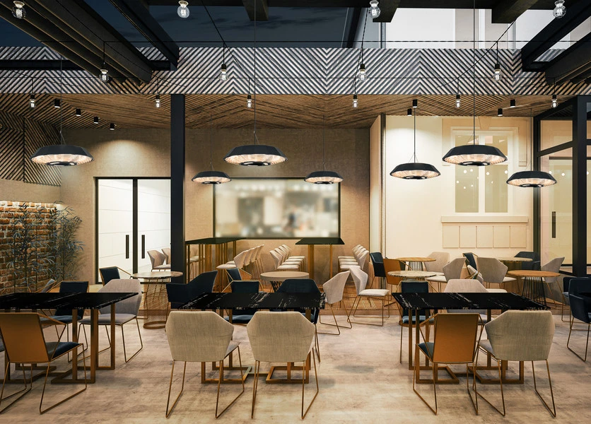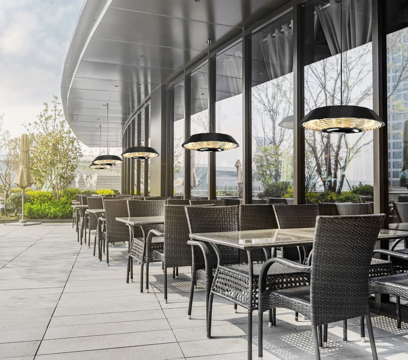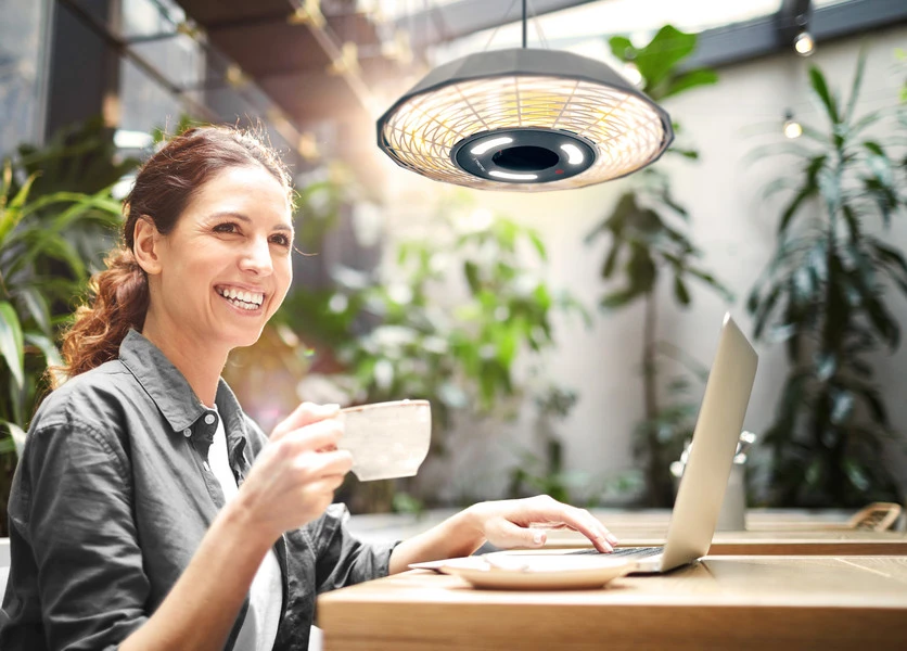 Stropni grelnik IR21, ki je 100-odstotno odporen na dež in je izdelan iz prašno barvanega aluminija z zaščitnim razredom IP45, združuje vse, kar gostinci pričakujejo od ogrevalne rešitve za gostinstvo na prostem. Zaradi njegove privlačne in robustne zasnove, enostavnega upravljanja z daljinskim upravljalnikom in visoke učinkovitosti tehnologije infrardečega ogrevanja je sevalni grelnik ekonomsko privlačen vir ogrevanja za nepokrite zunanje prostore restavracij, kavarn, barov, tovornjakov s hrano ali dogodkov. To pomeni, da se sezona na prostem začne prej in zagotavlja daljše opazno povečanje prodaje.