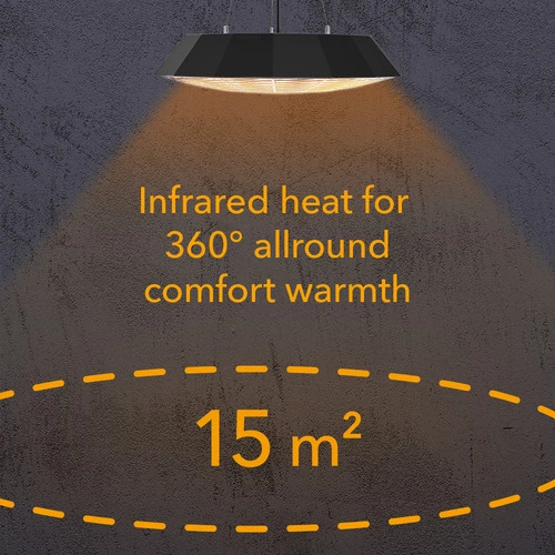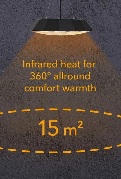 Navzdol sevajoča 360° vsestranska toplota iR21 ciljano ogreva površine do 15 m² – brez nadležnega časa zagona in brez neprijetnih vonjav ali hrupa. Takoj opazna toplota na koži z visoko toplotno učinkovitostjo.