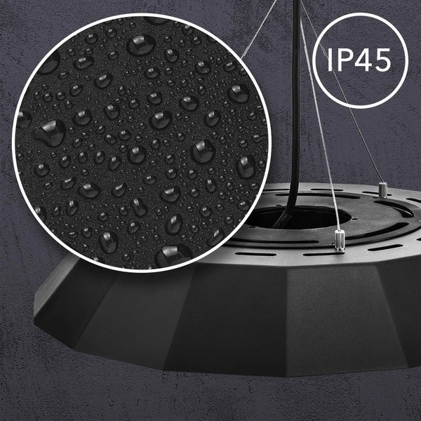 iR21 - zaščitni razred IP45. Prašno barvano aluminijasto ohišje iR21 je testirano za zaščitni razred IP45 in je 100-odstotno odporno na dež. Naj bo dež, sneg ali celo toča – slabe vremenske razmere ne deformirajo stropnega grelnika iR21.